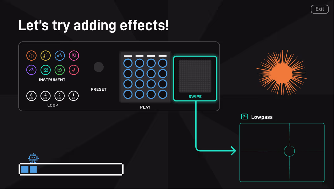 After seeing how the prototype went down, we started iterating on internal versions of the arcade machine, and customising the software on it. One big challenge that we faced was making sure we catered for anyone that might walk up to the machine. Luckily it wasn't difficult to convince people to give it a go! In addition to the full Endlesss experience we added two new modes, one aimed at beatmakers, and the other at absolute beginners: